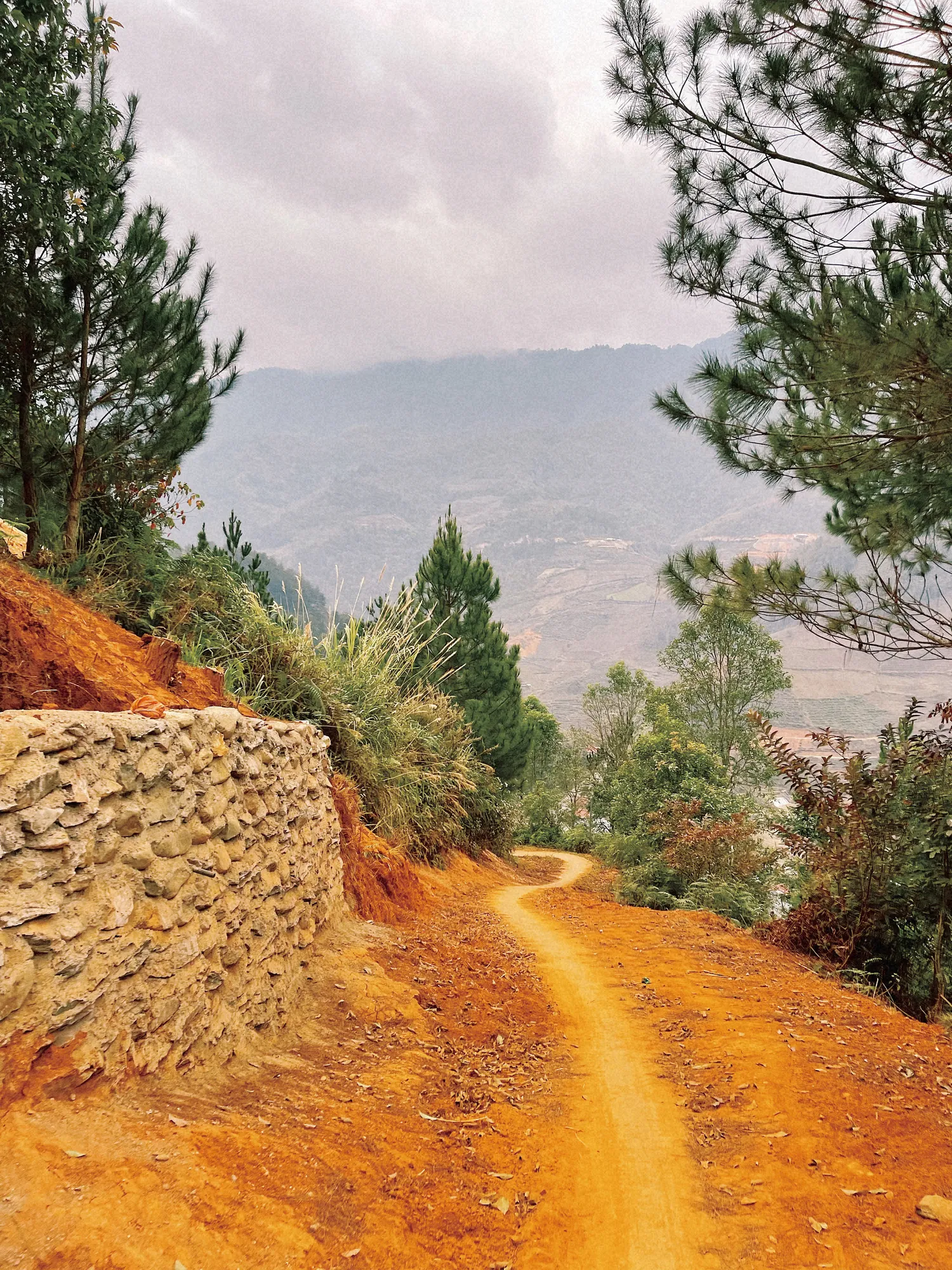 Chúng tôi đã thử cố gắng đi xe lên, nhưng con đường dốc đứng và liên tục ôm cua gắt khiến mọi nỗ lực trở nên bất khả. Bánh xe trượt nhẹ trên mặt đường xi măng lạnh ẩm, tay lái chòng chành giữa những khúc quanh gấp khúc, buộc chúng tôi phải dừng lại. Cuối cùng, chúng tôi đành xuống xe, chấp nhận rằng đoạn đường này không dành cho việc tự lái và tìm đến sự giúp đỡ của những người bản địa dưới chân núi.