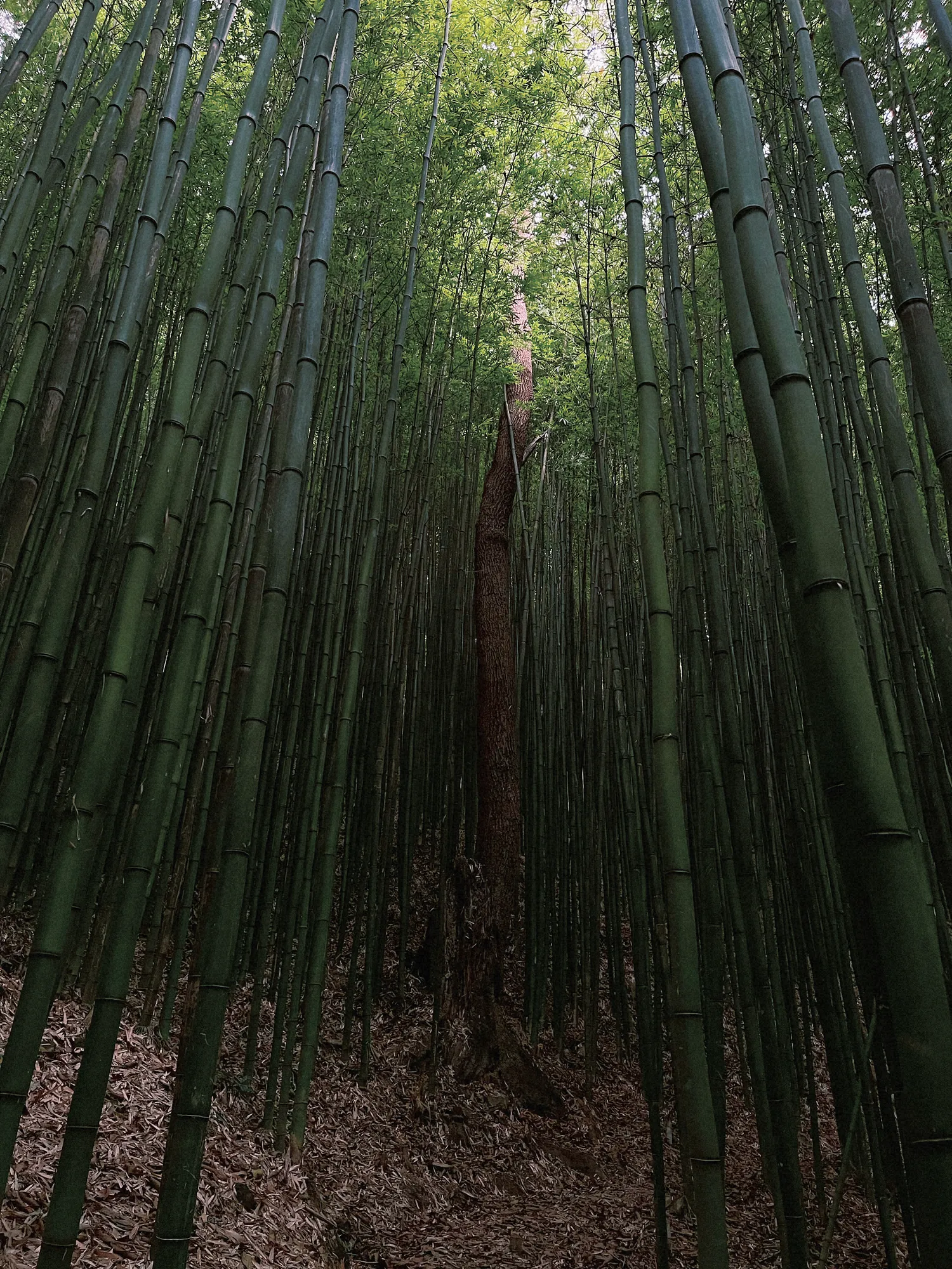 Sau chặng đường dài và nguy hiểm, chúng tôi mới đặt chân tới trước lối nhỏ đường đất vào rừng trúc. Trúc mọc bạt ngàn, thân cao vút, thẳng tắp, vươn lên che kín bầu trời bằng một sắc xanh lục sâu thẳm. Ánh sáng len lỏi qua những phiến lá mảnh khảnh, vỡ vụn thành những tia sáng mờ ảo rơi xuống mặt đất ẩm bết sương. Giữa không gian ấy, mọi âm thanh dường như bị hút cạn, chỉ còn lại tiếng gió phiêu du giữa những thân trúc và tiếng lá trên ngọn nghiêng ngả xào xạc. Cảm giác huyền bí, như thể tôi đang bước vào một thế giới khác - nơi rừng trúc lặng lẽ đứng canh giữ thời gian, còn con người chỉ là kẻ ghé qua, nhỏ bé và im lặng trước vẻ đẹp nguyên sơ của núi rừng.